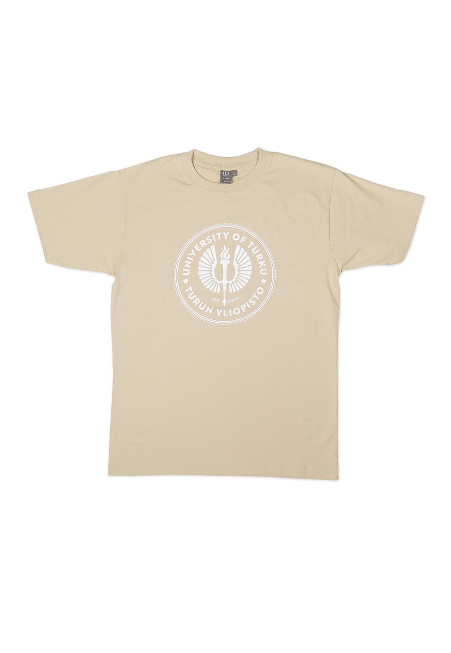 Hiekan värinen T-paita, jossa painatuksena yliopiston sinetistä inspiraation saanut siipisoihtu. KlassinenT-paita kestää käytössä ja esikutistettu materiaali säilyttää mallinsa pesusta toiseen. Materiaali 100% puuvilla.